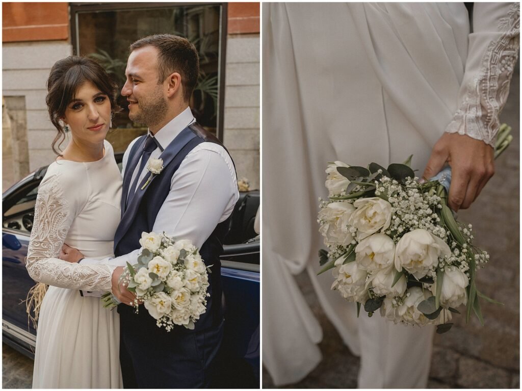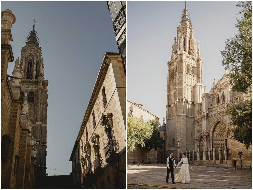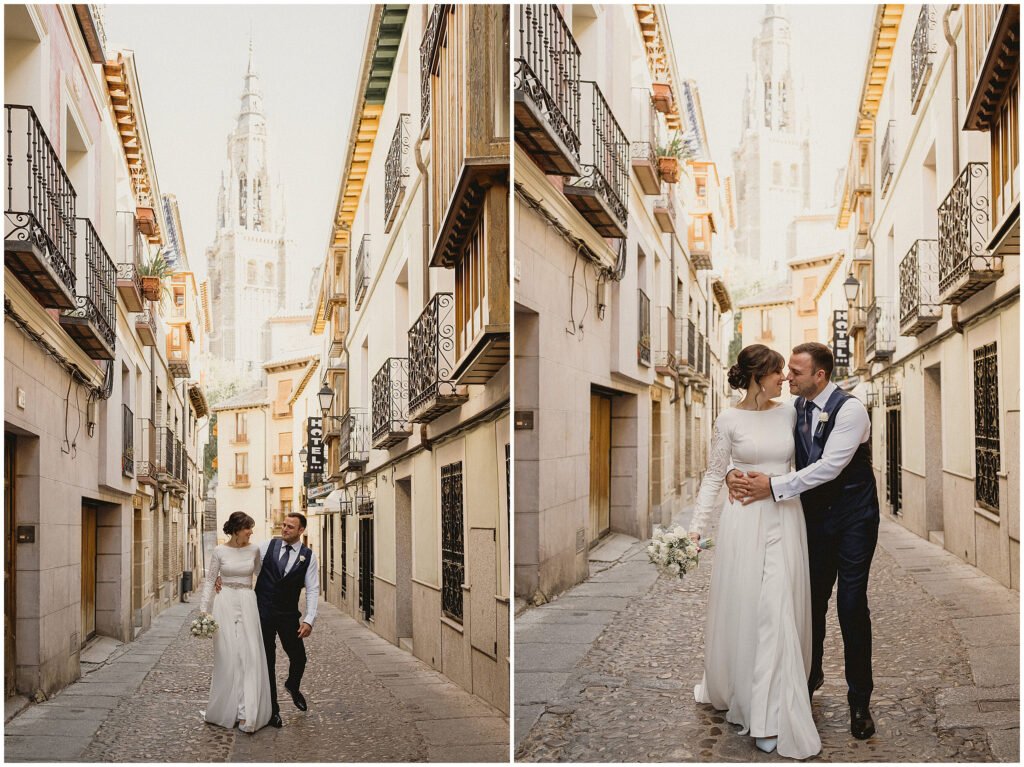 Paula y Eugenio decidieron verse antes de la ceremonia. Fue un momento muy romántico. Organizamos un first look en la zona de la Catedral de Toledo. Eugenio esperó a Paula mientras ella bajaba preciosa y nerviosa a la vez. Fue un encuentro increíble. Además, aprovechamos este rato para realizar un reportaje por la zona de la Catedral de Toledo.