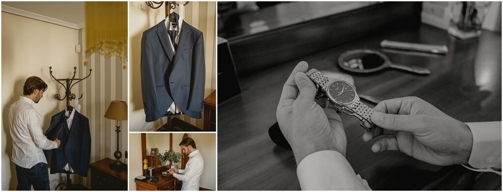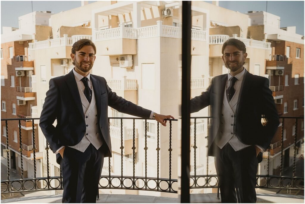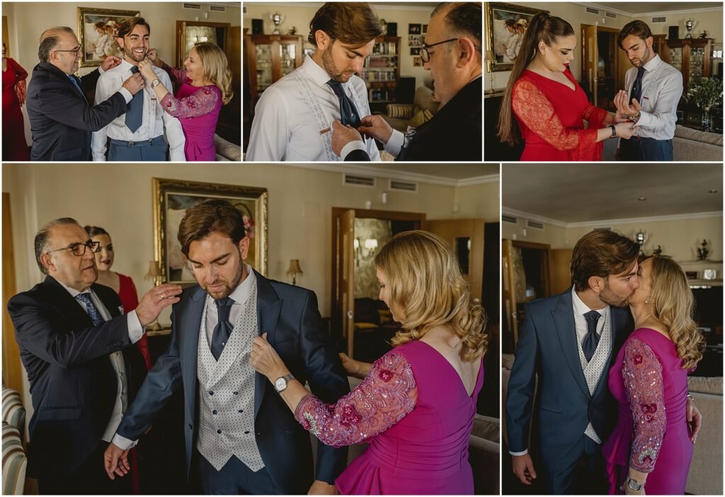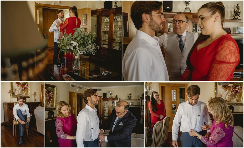 Todo comenzó en Torrevieja en casa de Juanjo. Cuando llegamos, Juanjo estaba acompañado de su familia. Estaban todos bastante tranquilos, Juanjo un poco más nervioso. Hicimos un ratito de fotografías con él antes de ir a casa de Marta. Juanjo iba vestido con un traje super elegante de Marco novio.