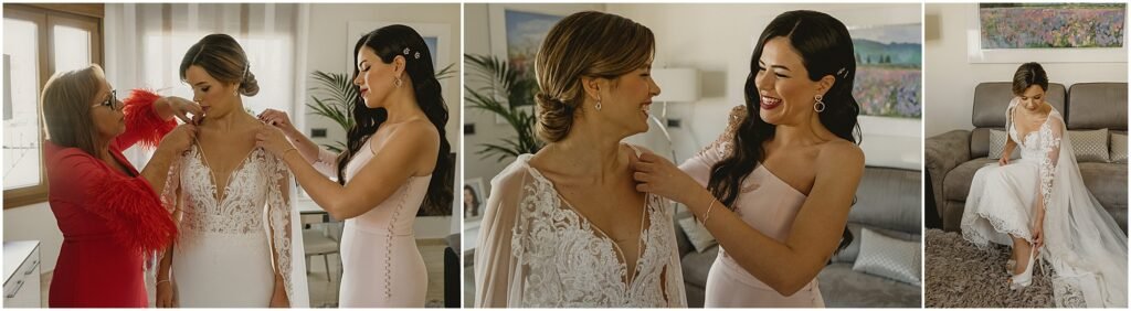 Hicimos todas las fotografías de detalle de Marta y conforme pasaban los minutos, su casa iba llenándose de familia y amigos, todos deseosos de estar con ella en este gran día.