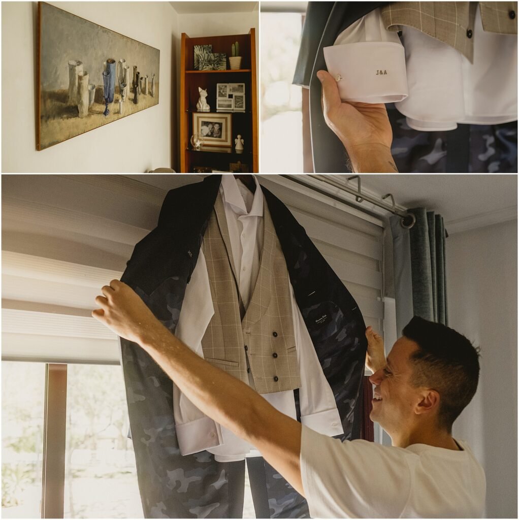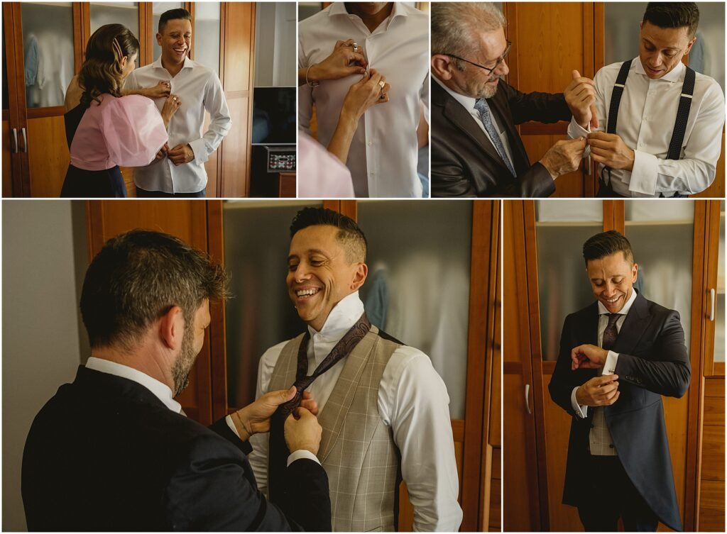 El día comenzó en casa de Jimmy. Cuando llegamos a su casa, estaban todos esperándonos preparados para empezar el día. Este rato es muy bonito, la pareja está nerviosa y todo se palpa en el ambiente.