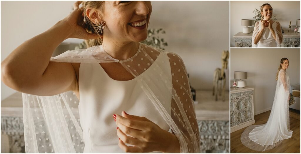 Ana estaba feliz y nerviosa por el día que le esperaba. Iba preciosa con un vestido con capa de Jesús Peiró. Iba peinada por Mayte Ruiz y maquillada por Pau Selles.