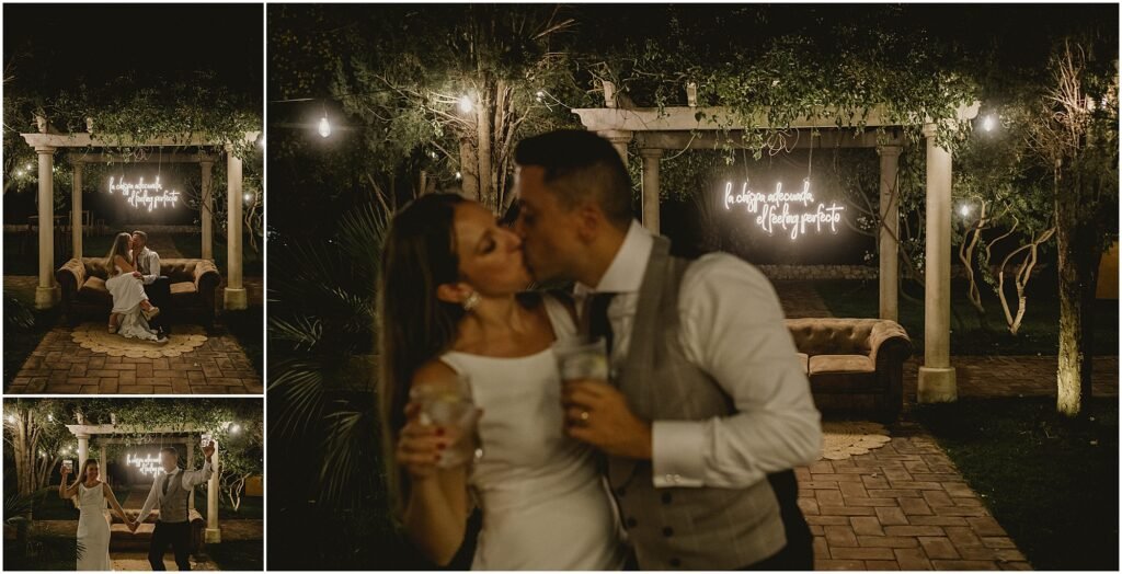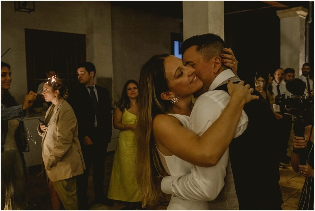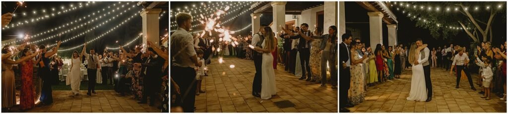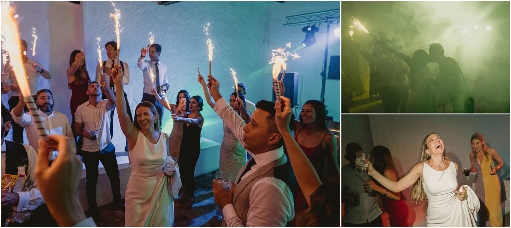 Para finalizar la boda en la Finca San Ramón de Elche, el baile de la pareja, con bengalas. Todo salió perfecto. Y cómo no, la barra libre. Una barra libre llena de luces, color y sobre todo, mucha diversión.