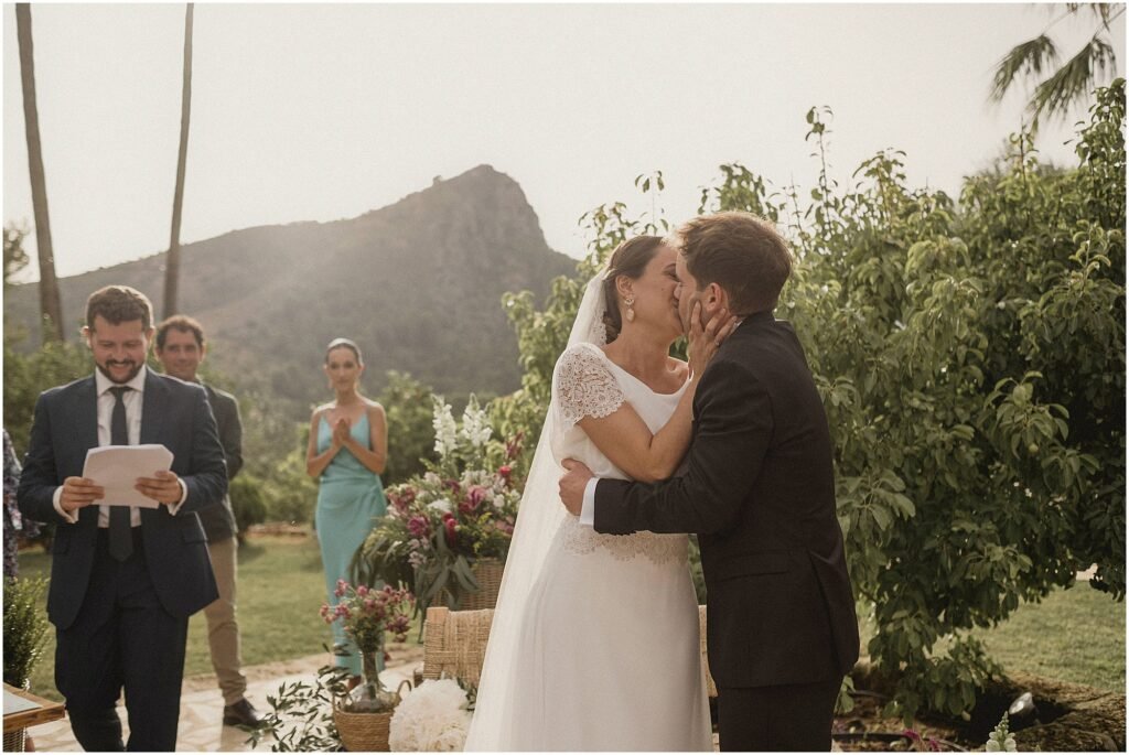 La ceremonia fue preciosa. Muy emotiva. Rodeados de naturaleza, con una puesta de sol espectacular. Cuando terminamos la ceremonia, estuvimos con ellos haciendo una sesión de pareja, aprovechando los últimos rayos de sol.
