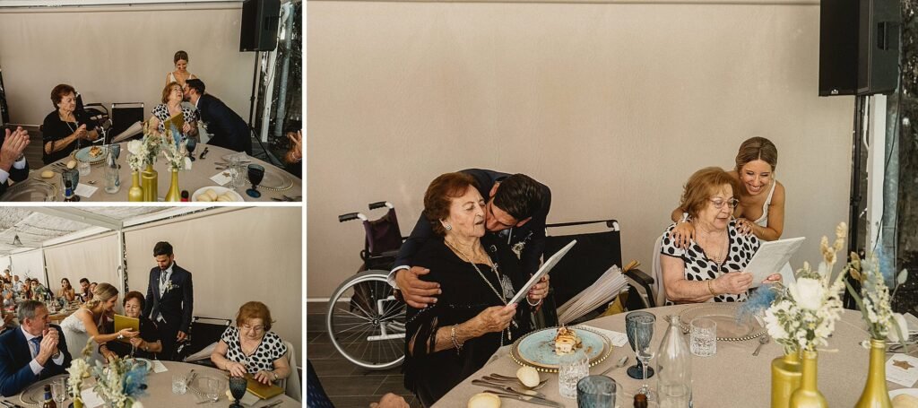 La celebración fue única. Desde que entraron los novios a la carpa hasta que la comida finalizó, todo fue alegría, ilusión, emoción y un no parar de cantar, bailar y reír.