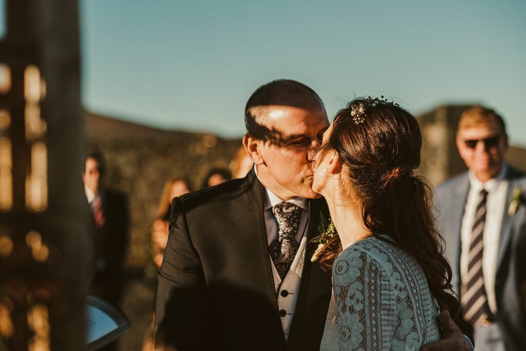 Una vez terminada la boda, fuimos a pasar un rato con ellos a solas a la Geria, a realizar sus fotografías de recién casados. Cogimos justo el momento de puesta de sol en los paisajes de la Geria. Ser fotógrafo de bodas en Lanzarote ha sido una experiencia fantástica. Poder conocer los rincones de su isla, explorarlos y poder fotografiarlos ha sido muy gratificante.