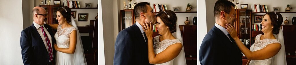 Después, fui a casa de Raquel. Se estaba cambiando allí con su familia y también vinieron a pasar un rato con ella sus amigas. Le hice fotografías mientras se terminaba de maquillar y se vestía. Raquel como siempre muy sonriente. Raquel llevaba un vestido precioso de Caramelo Novias, una tienda que se sitúa en San Vicente del Raspeig (Alicante). Iba peinada y maquillada por @tu_pelu_10.