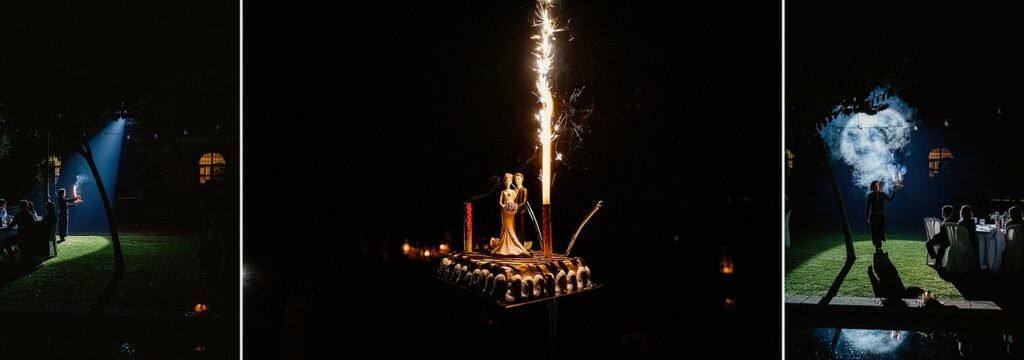Al terminar la ceremonia empezó el cóctel y después la cena, que se celebró en los jardines de la finca, donde hubo detalles para las mamás y papás, para los novios y para los amigos de los novios.