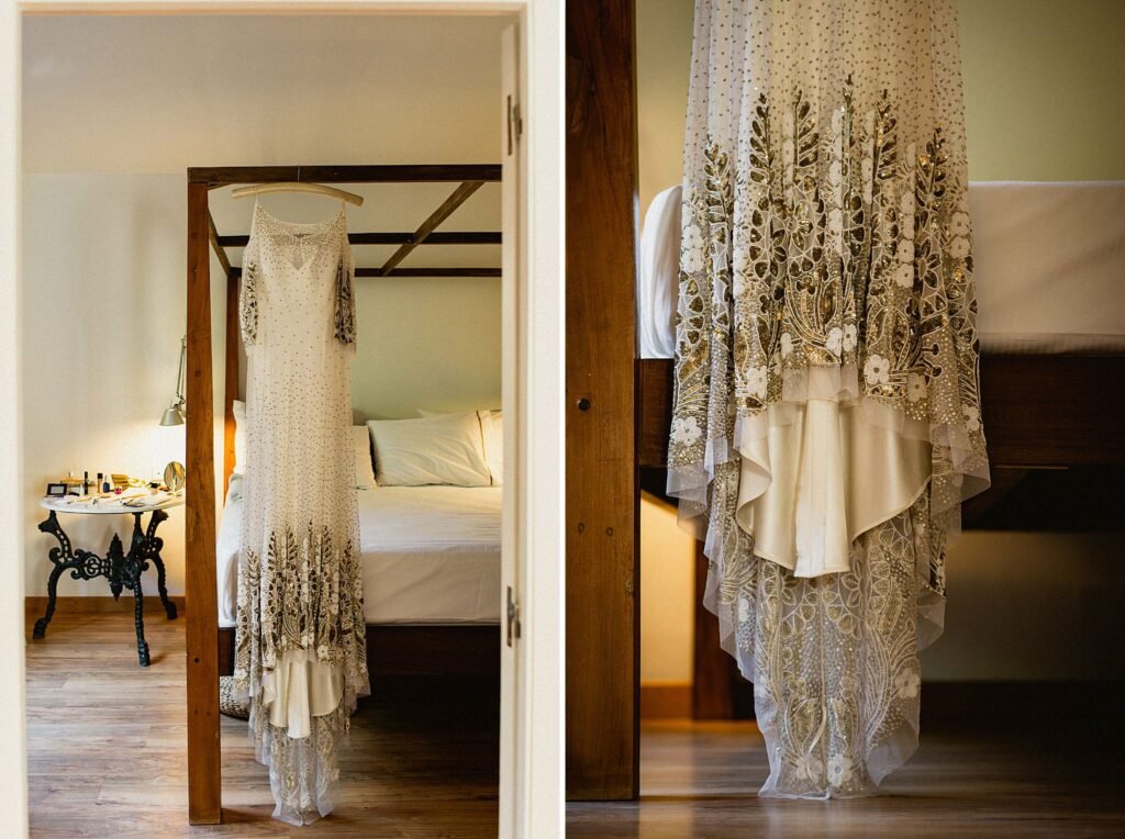 Vestido de la novia. Traje del novio.